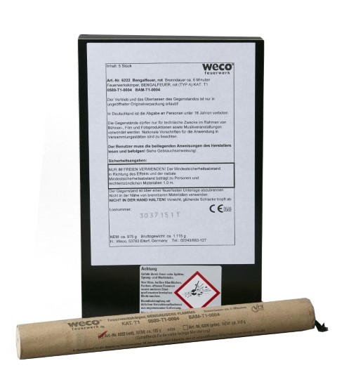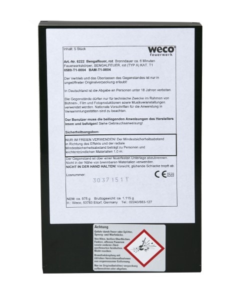 Weco Bengal Flamme rot 6 Min. 5er Pack