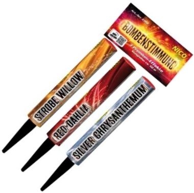 3 Bombenrohre mit verschiedenen Effekten mit praktischem Erdspieß.