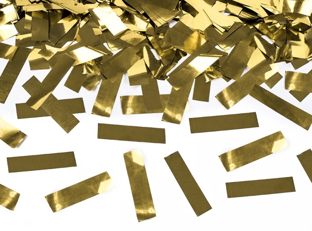 Großer Konfetti-Shooter gefüllt mit metallic-Konfetti in gold